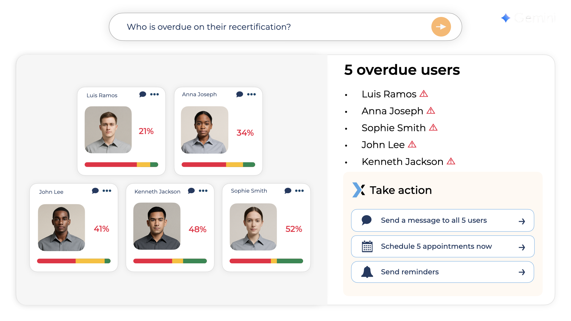 Consolidates personnel, compliance, schedules, and requirements into one source of truth. Ask anything about your organization’s readiness in plain language.